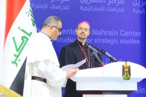 The program included speeches from His Excellency the National Security Advisor, Mr. Qassim Al-Araji, Mr. Ammar Al-Hakim, Apostolic Nuncio, WCC, CAPNI, UFUQ, Jews representative, a speech from the Aryan religions (Yazidi, Kakai, Zoroastrian), many of which (CAPNI, UFUQ, AIM, Aryan Religions) touched on the existential challenges and threats facing minorities.