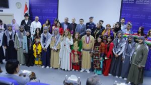 • Artistic and literary performances such as national and heritage costumes, an Armenian choir, a song about Iraqi diversity, a folk-dance group whose members wore Iraqi diversity costumes, a poem in Assyrian and its translation into Arabic by the Arab poet Amer Hamza, and other activities